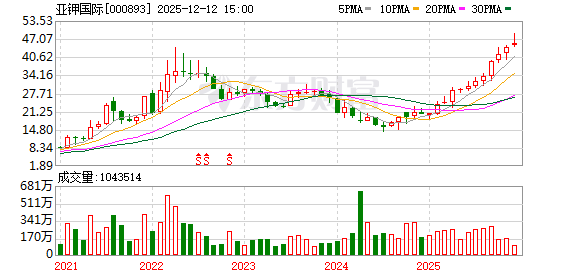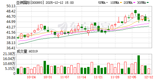 | 2025-04-16 | 000893 | 亚钾国际 | 登录 | 大农业 | 26.62 | 28.37 | 3.22 | 0.15 | 1.41 | 2.15 | 46,050 | 216.08 | 245.98 | 0/0 | 2025-04-16 14:50:03 |