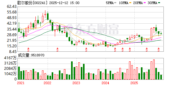 | 2025-02-25 | 002241 | 歌尔股份 | — | 登录 | — | 29.90 | 32.57 | 0.98 | -0.13 | 1.01 | 4.09 | 374,430 | 917.57 | 1,039.31 | 0/0 | 2025-02-25 14:50:04 | |