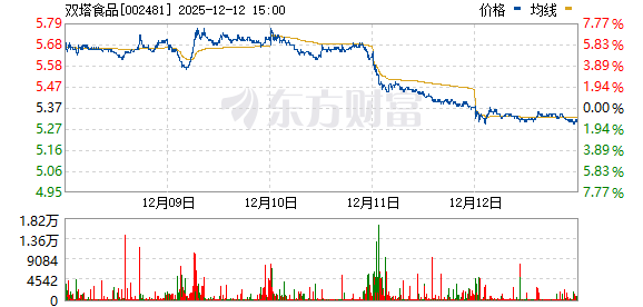 | 2025-04-17 | 002481 | 双塔食品 | 登录 | 大消费 | 5.69 | 6.26 | 0.00 | -0.18 | 1.25 | 7.31 | 46,703 | 63.62 | 70.20 | 0/0 | 2025-04-17 14:50:04 |