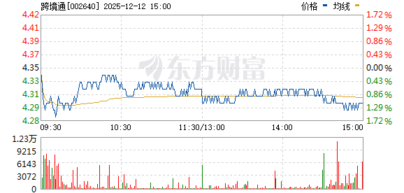 | 2025-04-17 | 002640 | 跨境通 | 登录 | 外贸受益概念 | 3.77 | 4.08 | 1.62 | 0.00 | 1.02 | 18.03 | 93,816 | 52.67 | 58.74 | 6/3 | 2025-04-17 14:50:04 |