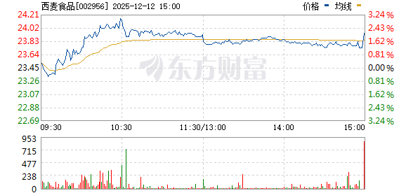 | 2025-05-09 | 002956 | 西麦食品 | 登录 | 大消费 | 21.24 | 22.36 | 4.48 | -0.23 | 3.48 | 2.82 | 13,395 | 47.41 | 47.42 | 0/0 | 2025-05-09 14:50:02 |
