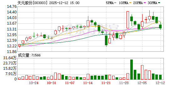 | 2025-05-08 | 003003 | 天元股份 | 登录 | 跨境电商 | 11.97 | 13.39 | -1.64 | -0.17 | 2.02 | 5.50 | 7,611 | 13.90 | 21.16 | 12/6 | 2025-05-08 14:50:04 |