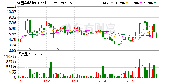 | 2025-03-12 | 600735 | 新华锦 | 登录 | 养老产业 | 5.83 | 6.19 | 3.55 | 0.00 | 3.55 | 18.67 | 46,102 | 24.80 | 25.00 | 2/1 | 2025-03-12 14:50:03 | ||