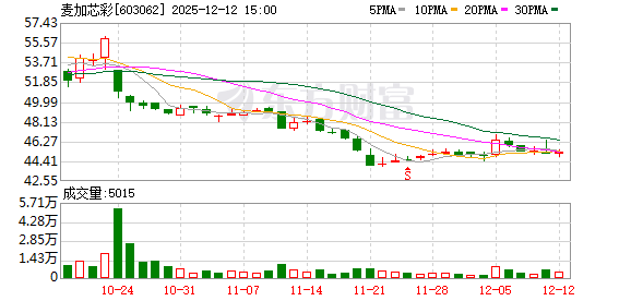 | 2025-03-13 | 603062 | 麦加芯彩 | — | 登录 | — | 40.35 | 44.68 | -0.66 | 0.00 | 0.87 | 3.88 | 5,258 | 13.40 | 43.58 | 0/0 | 2025-03-13 14:50:04 | |