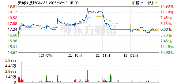 | 2025-05-09 | 603668 | 天马科技 | — | 登录 | — | 13.39 | 14.64 | 0.60 | -0.15 | 1.09 | 0.33 | 2,200 | 67.26 | 67.26 | 0/0 | 2025-05-09 14:50:03 |