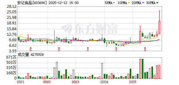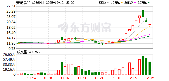 | 2025-04-18 | 603696 | 安记食品 | 登录 | 大消费 | 12.42 | 12.42 | 10.01 | 0.00 | 1.30 | 9.98 | 29,132 | 29.21 | 29.21 | 4/4 | 2025-04-18 14:50:01 |
