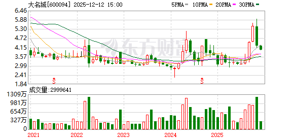 | 2025-11-14 | 沪股通专用 [只看TA] | 大名城 600094 60日涨停:5次 | 涨停记录 | 登录 | 房地产 | 1 | 1,735.83 | 1,766.53 | -30.70 | 沪股通专用 | 房地产开发,上海板块,2025中报预减,标准普尔,富时罗素,沪股通,融资融券,机构重仓,AB股,低空... 更多 |