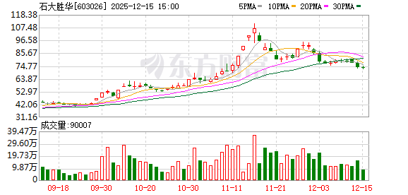 | 2025-11-17 | 机构专用 [只看TA] | 石大胜华 603026 60日涨停:9次 | 涨停记录 | 登录 | 锂电池 | 1 | 0.00 | 24,694.50 | -24,694.50 | 机构专用 | 化学制品,山东板块,百元股,沪股通,融资融券,环氧丙烷,固态电池,新能源车,氟化工,央国企改革,特斯... 更多 |