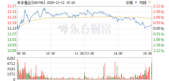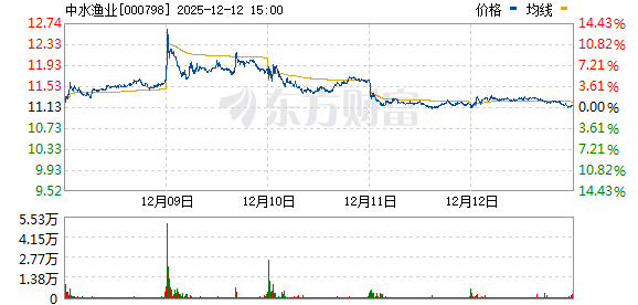 | 251114 | 中水渔业 | 登录 | 大消费 | 10月CPI同比增0.2%;财政部:将继续实施好提振消费专项行动 | 中国农业发展集团旗下,主营远洋水产品,有金枪饺子、金枪鱼圈等预制食品 | 9.98 | 9.37 | 9.82% | 3.31亿 | 34.28亿 | 34.28亿 99.99% | 966.33 1.03万手 | 2.92% | 111115 145212 | 4 | 1 | 农牧饲渔 | 农牧饲渔,北京板块,中字头,水产养殖,央... 更多 |