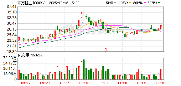 | 250905 | 东方钽业 | 登录 | 有色金属 | 美联储降息预期提升 | 国内最大的钽、铌产品生产基地;子公司西材院参与了国际四大国际科技合作项目之一的“国际热核聚变实验反应... 更多 | 10.00 | 22.55 | 5.33% | 5.81亿 | 113.12亿 | 113.85亿 99.36% | 7175.64 3.18万手 | 12.35% | 130327 130327 | 0 | 1 | 小金属 | 小金属,宁夏板块,深股通,可控核聚变,半... 更多 |