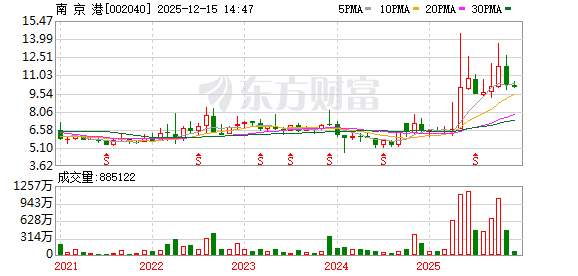 | 250514 | 南 京 港 002040 2/2 | 登录 | 《3日榜》 湖州劳动路:1698.7 机构专用:53.69 T王:100.04 净额:1852.43 | 航运 | 市场短期或迎抢运潮,集运指数期货主力合约大涨 | 属长三角经济区,实控人为南京市国资委旗下的南京港集团 | 10.03 | 8.45 | 13.94% | 5.67亿 | 41.06亿 | 41.4亿 99.19% | 4949.36 5.86万手 | 8.73% | 093039 094700 | 5 | 2 | 航运港口 | 航运港口,江苏板块,一带一路,央国企改革... 更多 |