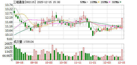 | 241211 | 三维通信 002115 8/4 | 登录 | 《3日榜》 竞价抢筹:-363.61 深股通专用:1322.97 机构专用:-2072.92 方新侠:5370.37 成都系:2867.46 上海超短帮:6441.5 上塘路:4882.53 T王:-783.39 T王:-770.42 净额:16894.49 | 卫星互联网 | 公司子公司海卫通是专业提供卫星宽带互联网服务的运营商,通过直接为终端客户提供一站式全场景卫星宽带接入... 更多 | 9.95 | 8.95 | 3.17% | 2.14亿 | 67.32亿 | 72.58亿 92.75% | 2.68亿 29.98万手 | 125.57% | 092500 092500 | 0 | 2 | 互联网服 | 互联网服务,浙江板块,标准普尔,深股通,... 更多 |
