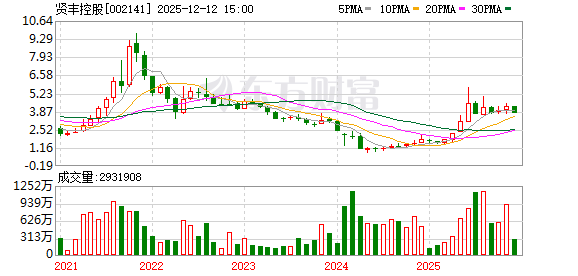 | 251120 | 贤丰控股 | 登录 | 锂电池 | 碳酸锂期货强势突破10万元大关;VC等电解液添加剂价格连续大涨 | 公司新能源业务目前主要布局锂电池正极材料三元前驱体 | 10.00 | 4.07 | 11.31% | 4.62亿 | 41.47亿 | 42.04亿 98.65% | 796.17 1.96万手 | 1.72% | 100806 142324 | 9 | 1 | 电子元件 | 电子元件,广东板块,2025中报预增,P... 更多 |