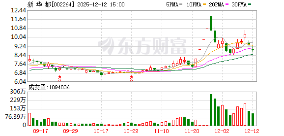 | 250910 | 新 华 都 | 登录 | 大消费 | 阿里巴巴旗下高德地图推出“高德扫街榜” 将发放超10亿元补贴 | 福建零售连锁龙头企业 | 10.05 | 8.1 | 14.14% | 7.44亿 | 53.04亿 | 58.3亿 90.97% | 6282.95 7.76万手 | 8.45% | 093030 100103 | 4 | 1 | 互联网服 | 互联网服务,福建板块,内贸流通,赛马概念... 更多 |