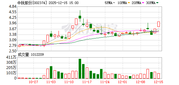 | 251110 | 中锐股份 | 登录 | 大消费 | 奶皮子糖葫芦等新消费火爆出圈;财政部:将继续实施好提振消费专项行动 | 公司设立子公司贵宴樽酒业(上海)有限公司主要业务为酒类经营业务,产品定位为核心产区高品质酱酒 | 10.13 | 3.48 | 9.47% | 3.43亿 | 37.77亿 | 37.77亿 100% | 7169.58 20.6万手 | 20.93% | 103636 103636 | 0 | 1 | 包装材料 | 包装材料,山东板块,融资融券,白酒,化债... 更多 |
