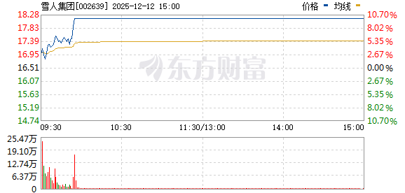 | 250212 | 雪人股份 002639 1/1 | 登录 | 冰雪产业 | 习近平将出席哈尔滨第九届亚洲冬季运动会开幕式并举行外事活动 | 冰雪产业制造领域的国家单项冠军企业,专注于冰雪场地温控设施的建设以及制冰造雪设备的供应 | 9.99 | 7.71 | 14.97% | 7.22亿 | 50.16亿 | 59.57亿 84.21% | 7644.16 9.91万手 | 10.59% | 131515 131515 | 0 | 1 | 通用设备 | 通用设备,福建板块,深股通,融资融券,预... 更多 |