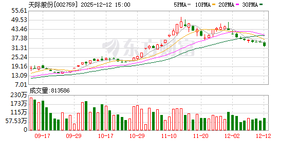 | 251031 | 天际股份 | 登录 | 锂电池 | 六氟磷酸锂价格持续上涨 | 公司六氟磷酸锂产能位居行业前列,互动平台表示密切关注固态电池的技术路线,制定相关材料的研发方向,以应... 更多 | 9.99 | 30.84 | 8.52% | 13.04亿 | 154.49亿 | 154.63亿 99.91% | 2.42亿 7.85万手 | 18.56% | 093109 093109 | 0 | 2 | 电池 | 电池,广东板块,融资融券,磷化工,钠离子... 更多 |