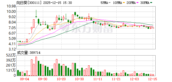 | 250923 | 向日葵 300111 2/2 | 登录 | 《1日榜》 机构专用:-4654.58 T王:-1003.43 T王:2006.5 净额:-3651.51 《3日榜》 机构专用:-4756.38 T王:-1007.71 T王:1997.57 净额:-3766.52 | 资产重组 | 公司拟购买兮璞材料100%股权及贝得药业剩余40%,兮璞材料主要从事高端半导体材料,主要产品包括半导... 更多 | 20.00 | 7.14 | 32.42% | 27.5亿 | 91.91亿 | 91.91亿 100% | 4021.05 5.63万手 | 1.46% | 142245 142245 | 0 | 2 | 化学制药 | 化学制药,浙江板块,创业板综,QFII重... 更多 |