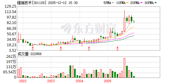 | 250825 | 强瑞技术 | 登录 | 液冷服务器 | OpenAI称未来5个月要将算力扩大一倍 | 公司的液冷产品,主要用于液冷机柜服务器的性能测试;公司正在与中兴通讯、浪潮、中航光电等客户拓展进一步... 更多 | 20.00 | 117.98 | 14.43% | 16.19亿 | 122.04亿 | 122.04亿 100% | 1.32亿 1.12万手 | 8.15% | 142354 142354 | 0 | 1 | 专用设备 | 专用设备,广东板块,专精特新,创业板综,... 更多 |