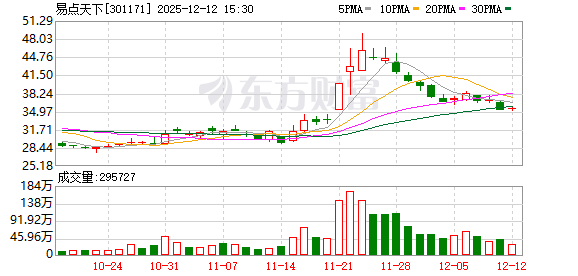 | 251121 | 易点天下 | 登录 | 短剧/互动影游+人工智能大模型 | 谷歌发布新图像模型 | 公司与阿里云达成AI漫剧出海框架合作协议,共同打造首个AI漫剧出海加速增长引擎 | 19.99 | 39.97 | 38.27% | 55.4亿 | 152.24亿 | 188.61亿 80.72% | 1.23亿 3.08万手 | 2.22% | 131403 145136 | 3 | 1 | 互联网服 | 互联网服务,陕西板块,创业板综,深股通,... 更多 |