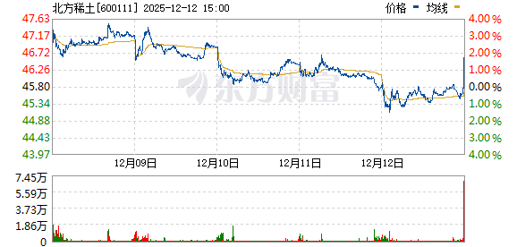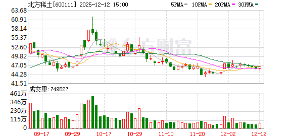 | 251013 | 北方稀土 | 登录 | 稀土磁材 | 商务部回应稀土相关技术等物项实施出口管制 | 公司是全球最大的稀土产品供应商 | 10.00 | 57.73 | 10.52% | 214.56亿 | 2086.98亿 | 2086.98亿 100% | 8.33亿 14.43万手 | 3.88% | 141651 141651 | 0 | 1 | 小金属 | 小金属,内蒙古,2025中报预增,标准普... 更多 |