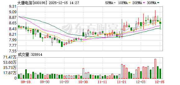 | 241217 | 大唐电信 600198 1/1 | 登录 | 《1日榜》 量化基金:2890.76 益田路:2393.81 炒股养家:3307.39 沪股通专用:2472.39 宁波桑田路:1776.49 北京帮:-734.23 T王:-807.4 净额:11299.21 | 国产芯片 | 四大行业协会发声谨慎采购美国芯片 | 中国信息通信科技集团旗下,聚焦集成电路设计和特种通信领域 | 10.04 | 11.73 | 9.51% | 9.75亿 | 103.28亿 | 152.91亿 67.54% | 1.83亿 15.57万手 | 18.73% | 093426 093850 | 3 | 1 | 通信设备 | 通信设备,北京板块,沪股通,中芯概念,并... 更多 |