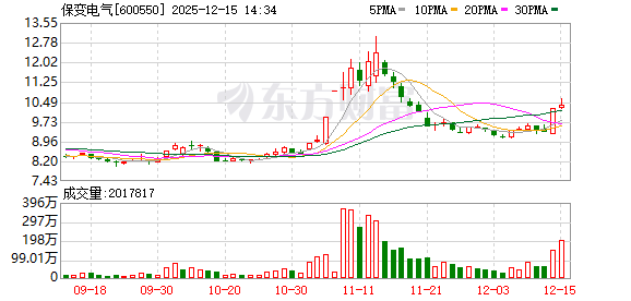 | 241023 | 保变电气 600550 1/1 | 登录 | 国企改革 | 中国兵器装备集团正与电气装备集团进行输变电装备业务整合,公司控股股东或变更 | 10.03 | 12.29 | 13.28% | 29.26亿 | 226.32亿 | 226.32亿 100% | 1009.37 0.82万手 | 0.34% | 101420 103756 | 3 | 1 | 电网设备 | 电网设备,河北板块,沪股通,融资融券,机... 更多 |