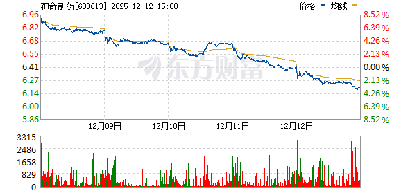 | 241022 | 神奇制药 600613 2/2 | 登录 | 《3日榜》 量化基金:1355.87 量化基金:361.28 温州帮:989.45 净额:2706.6 | 医药 | 公司拥有中国驰名商标“神奇”品牌,其中枇杷止咳颗粒、强力枇杷露等较为知名 | 10.08 | 7.21 | 7.27% | 2.46亿 | 34.56亿 | 38.51亿 89.75% | 3286.63 4.56万手 | 13.38% | 095509 095509 | 0 | 2 | 化学制药 | 化学制药,上海板块,AB股,超级真菌,中... 更多 |