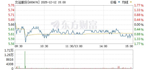 | 241118 | 交运股份 600676 2/2 | 登录 | 《3日榜》 量化基金:-937.13 净额:-937.13 | 快递物流+国企改革 | 证监会发布《上市公司监管指引第10号——市值管理》 | 公司主要业务包括道路货运与物流服务、道路客运与旅游服务,持有上海大众交运出租汽车有限公司50%股权 | 9.98 | 5.51 | 1.42% | 8033.26万 | 56.67亿 | 56.67亿 100% | 1.34亿 24.31万手 | 166.77% | 092503 092503 | 0 | 2 | 汽车零部 | 汽车零部件,上海板块,破净股,融资融券,... 更多 |