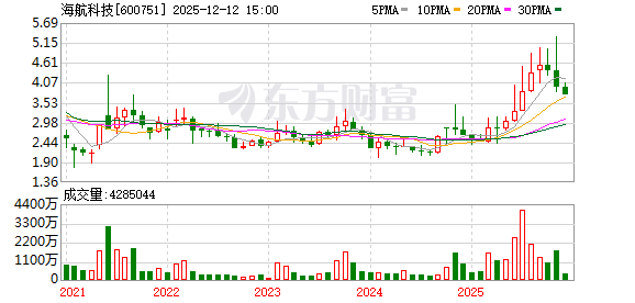 | 250718 | 海航科技 600751 2/2 | 登录 | 《3日榜》 温州帮:-2935.97 沪股通专用:4464.73 山东帮:2871.3 净额:4400.06 | 航运 | 公司主营国际船舶普通货物运输、国际船舶集装箱运输,是天津海运业龙头 | 9.92 | 4.1 | 12.18% | 12.72亿 | 105.5亿 | 118.87亿 88.75% | 3310.42 8.07万手 | 2.6% | 093219 141307 | 6 | 2 | 航运港口 | 航运港口,天津板块,内贸流通,沪股通,融... 更多 |