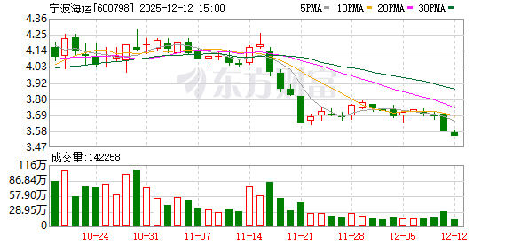 | 250620 | 宁波海运 | 登录 | 《1日榜》 陈小群:4521.28 量化基金:2015.9 量化基金:3704.46 成都系:4194.72 T王:-720.64 T王:-744.71 净额:12971.01 | 航运 | 中国和东亚输往美国西岸的货柜海运费率跳涨94% | 公司主营沿海、长江货物运输、国际远洋运输,国际航线包括马来西亚至国内的矿砂运输,印尼、俄罗斯等至国内... 更多 | 10.10 | 4.36 | 14.16% | 7.26亿 | 52.6亿 | 52.6亿 100% | 9712.54 22.28万手 | 13.37% | 095019 095427 | 1 | 1 | 航运港口 | 航运港口,浙江板块,融资融券,预亏预减,... 更多 |