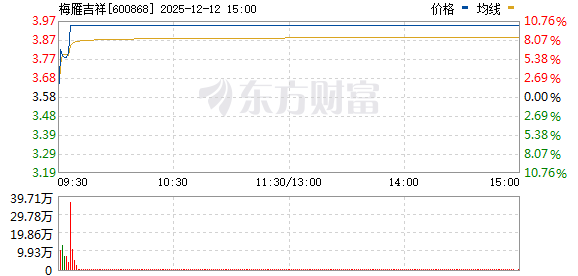 | 250213 | 梅雁吉祥 600868 1/1 | 登录 | 《1日榜》 量化打板:1281.01 量化基金:-668.82 量化基金:1937.8 温州帮:-557.43 净额:1992.56 | 其他 | 全资子公司梅州市梅雁矿业有限公司拥有嵩溪锑银矿矿山以及相配套的选矿厂和尾矿库,公司拟1.5亿元—2亿... 更多 | 10.11 | 3.05 | 9.79% | 5.53亿 | 57.89亿 | 57.89亿 100% | 4393.17 14.4万手 | 7.94% | 095313 095937 | 1 | 1 | 电力行业 | 电力行业,广东板块,低价股,融资融券,预... 更多 |