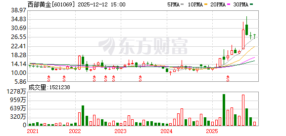 | 251013 | 西部黄金 | 登录 | 黄金 | 现货黄金突破4070美元/盎司再创新高 | 西北地区最大的黄金采选冶企业 | 10.00 | 32.9 | 6.38% | 18.02亿 | 291.88亿 | 299.72亿 97.39% | 1.08亿 3.29万手 | 6.01% | 133116 133116 | 0 | 1 | 贵金属 | 贵金属,新疆板块,2025中报预增,标准... 更多 |