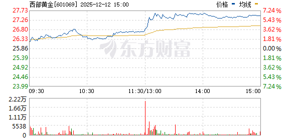 | 250603 | 西部黄金 | 登录 | 黄金 | 黄金期现货大涨;港股老铺黄金继续创历史新高 | 西北地区最大的黄金采选冶企业 | 10.03 | 19.64 | 5.43% | 7.11亿 | 134.34亿 | 180.23亿 74.53% | 6231.38 3.17万手 | 8.76% | 100859 100859 | 0 | 1 | 贵金属 | 贵金属,新疆板块,标准普尔,富时罗素,沪... 更多 |