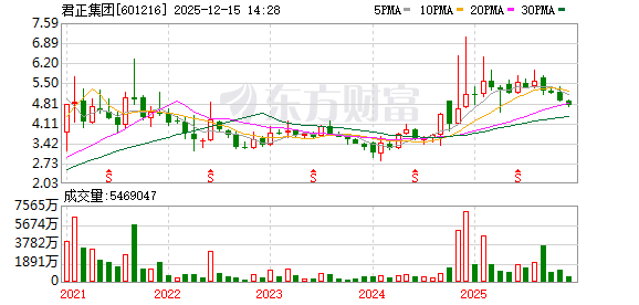 | 241111 | 君正集团 601216 4/2 | 登录 | 《1日榜》 量化基金:-1888.45 温州帮:-1891.69 消闲派:6999.8 沪股通专用:-8061.64 低位挖掘:11988 净额:7146.02 | 蚂蚁集团概念股 | 公司为天弘基金(余额宝发行方)的第三大股东 | 10.10 | 5.45 | 4.52% | 19.4亿 | 459.87亿 | 459.87亿 100% | 1.66亿 30.38万手 | 8.54% | 134117 134117 | 0 | 1 | 化学原料 | 化学原料,内蒙古,标准普尔,富时罗素,M... 更多 |