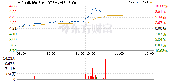 | 250319 | 嘉泽新能 601619 1/1 | 登录 | 光伏 | 光伏“抢装”潮推动硅片、组价价格持续走高 | 公司主要从事集中式风力、光伏发电的开发运营;此前拟与天津中车风能公司合资在鸡西投资260亿元建设新能... 更多 | 10.00 | 3.85 | 6.06% | 5.57亿 | 93.72亿 | 93.72亿 100% | 2224.57 5.78万手 | 4% | 110357 135503 | 4 | 1 | 电力行业 | 电力行业,宁夏板块,标准普尔,富时罗素,... 更多 |