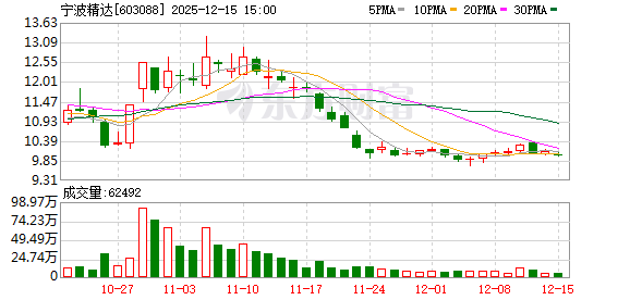 | 241210 | 宁波精达 603088 5/4 | 登录 | 《3日榜》 陈小群:4980.57 量化基金:2006.54 红岭路:1596.25 上塘路:-1577.67 净额:7005.69 | 机器人 | 华为增资旗下极目机器公司 | 宁波市国资委旗下,主要业务为换热器装备和精密压力机 | 10.02 | 12.3 | 29.03% | 15.26亿 | 53.58亿 | 53.86亿 99.48% | 1594.08 1.3万手 | 1.04% | 092501 142816 | 10 | 2 | 通用设备 | 通用设备,浙江板块,专精特新,融资融券,... 更多 |