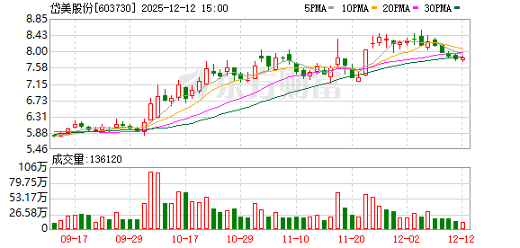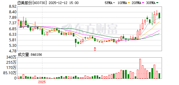 | 251124 | 岱美股份 | 登录 | 机器人 | 公司拟以1亿元在上海设立全资子公司岱美科技,经营范围涵盖智能机器人、工业机器人及服务机器人相关研发销... 更多 | 9.99 | 8.04 | 2.81% | 4.73亿 | 172.75亿 | 172.75亿 100% | 1.14亿 14.16万手 | 24.08% | 133055 133055 | 0 | 1 | 汽车零部 | 汽车零部件,上海板块,标准普尔,沪股通,... 更多 |