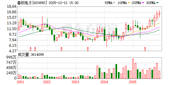 | 251024 | 春秋电子 | 登录 | 其他 | 公司是笔记本结构件国内龙头,镁合金技术已切入小米、蔚来、小鹏、比亚迪、宝马、吉利、大众等车企供应链,... 更多 | 9.98 | 14.1 | 14.06% | 8.73亿 | 62.52亿 | 62.52亿 100% | 2952.32 2.09万手 | 3.38% | 093430 134651 | 7 | 1 | 消费电子 | 消费电子,江苏板块,2025中报预增,沪... 更多 |