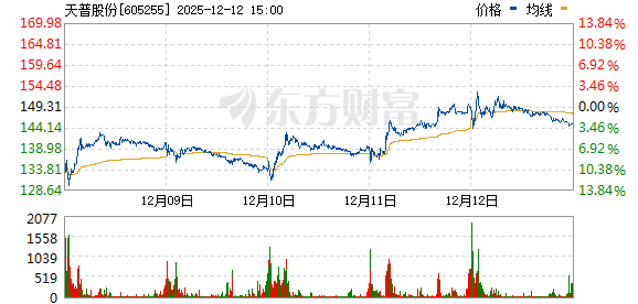 | 250207 | 天普股份 605255 1/1 | 登录 | 新能源汽车 | 雷军称“正讨论进一步提产” | 公司主要从事汽车用高分子材料流体管路系统和密封系统零件及总成的研产销,正在进行的主要研发项目包括新能... 更多 | 10.01 | 14.73 | 3.01% | 5810.63万 | 19.75亿 | 19.75亿 100% | 2718.42 1.85万手 | 46.78% | 102953 102953 | 0 | 1 | 汽车零部 | 汽车零部件,浙江板块,微盘股,新能源车,... 更多 |