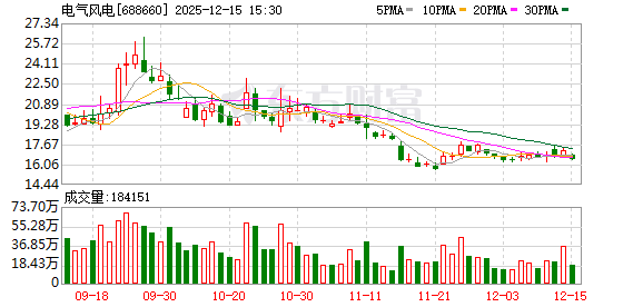 | 241031 | 电气风电 688660 1/1 | 登录 | 风电 | 中国最大的海上风电整机制造商与服务商,国内海上风电龙头;公司主要从事风力发电设备的研产销以及后市场配... 更多 | 20.05 | 5.03 | 5.30% | 3.43亿 | 67.07亿 | 67.07亿 100% | 7.35 0.01万手 | 0.02% | 102007 105007 | 2 | 1 | 风电设备 | 风电设备,上海板块,沪股通,融资融券,国... 更多 |