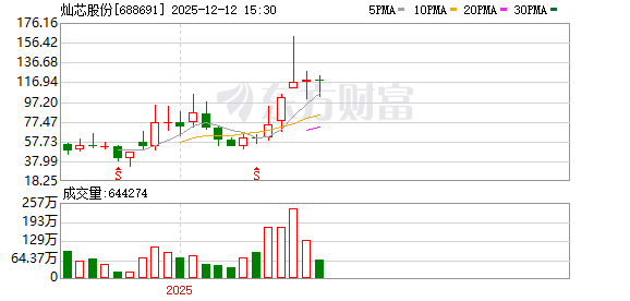 | 250226 | 灿芯股份 688691 1/1 | 登录 | 《1日榜》 量化基金:878.89 机构专用:8049.26 孙哥:2995.2 净额:11923.35 | 国产芯片 | 美寻求加大对华芯片产业限制,外交部回应 | 公司是全球第五、境内第二的芯片设计服务商,与中芯国际已建立长期战略合作关系 | 20.00 | 99.84 | 30.48% | 6.94亿 | 25.46亿 | 119.81亿 21.25% | 3102.02 0.31万手 | 4.47% | 142801 142922 | 1 | 1 | 半导体 | 半导体,上海板块,专精特新,融资融券,预... 更多 |